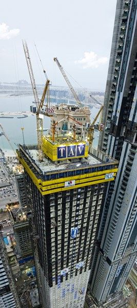 Yüksek yapı çekirdeğinde tüm perde kalıplarının SCP platformuna bağlı olarak kule vinçten bağımsız olarak yükseltilebilmesi, kule vincin kullanılamadığı rüzgar hızlarında bile (72 km/h) çalışma yapılabilmesini sağar, dolayısıyla inşaat sürecini kısaltır.