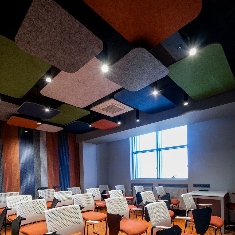Yüksek ses yutum özelliğine sahip olan Plate 80 akustik tavan paneli, kompaktlık ve yüzey alanı arasında ideal bir denge sunar. Hem bireysel hem de çoklu panel kurgularına uygundur. Çeşitli iç mekân projelerinde fonksiyonel ve estetik bir çözüm olarak öne çıkar.